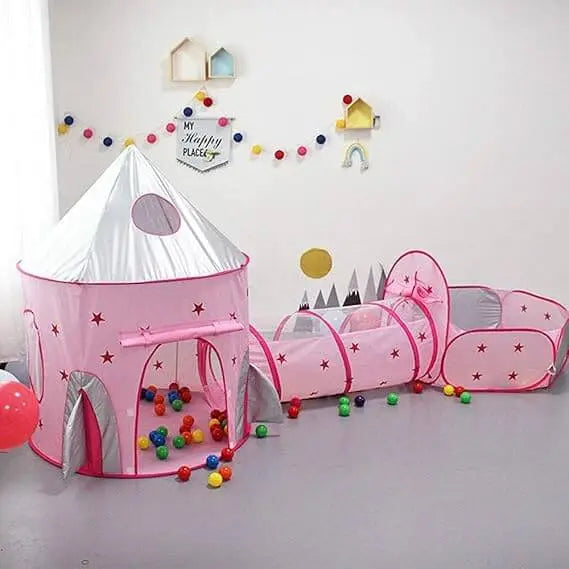 3-in-1 Design: Includes a rocket tent, tunnel, and ball pit that can be used together or separately.