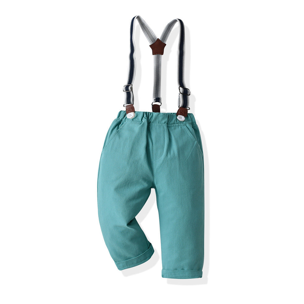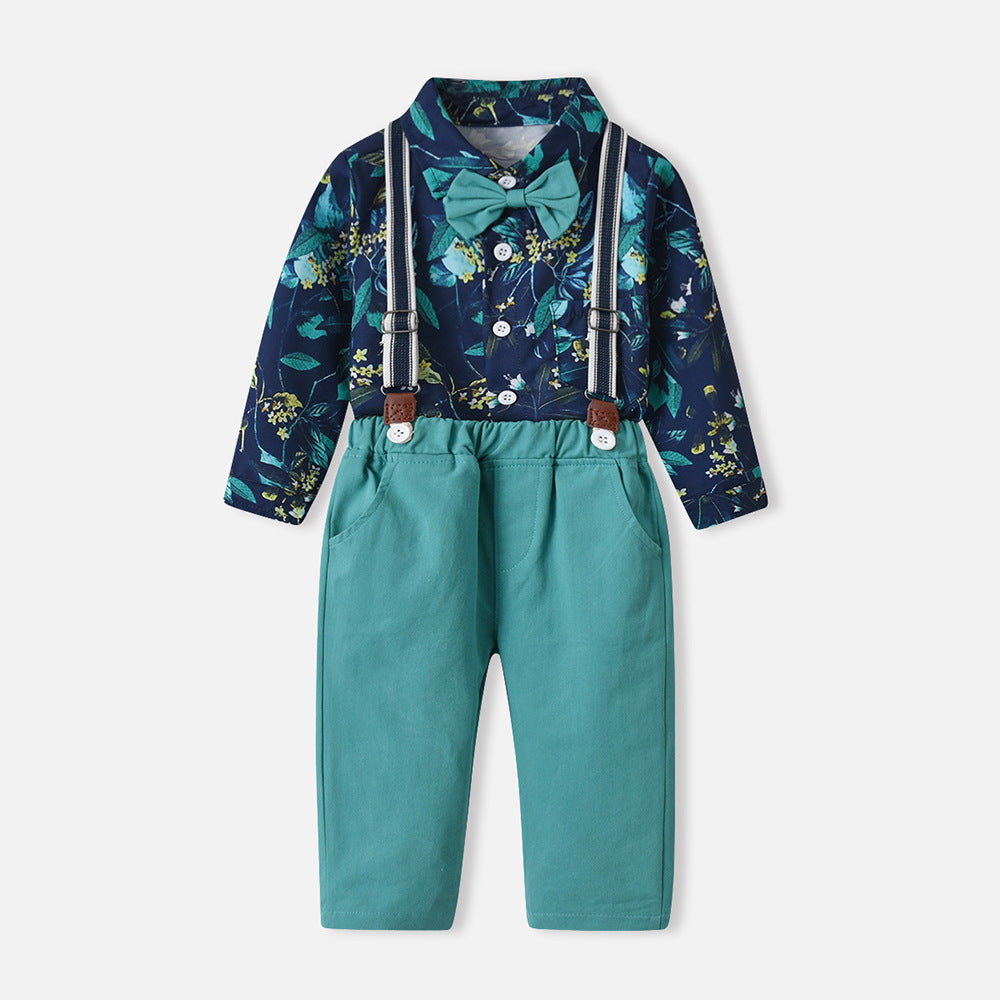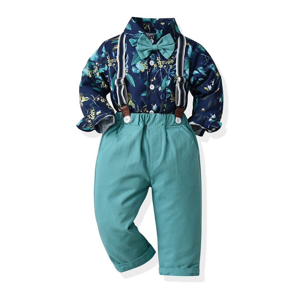 Printed Long Sleeve Shirt Handsome Suspender
